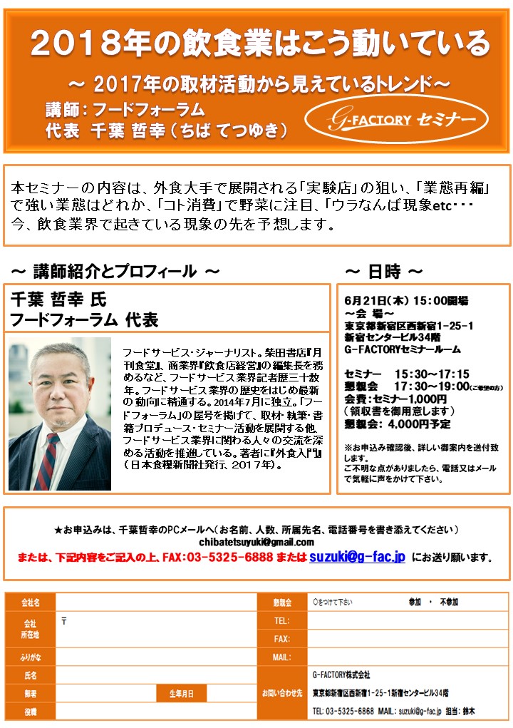【セミナー】2018年の飲食業はこう動いている~2017年の取材活動から見えているトレンド~