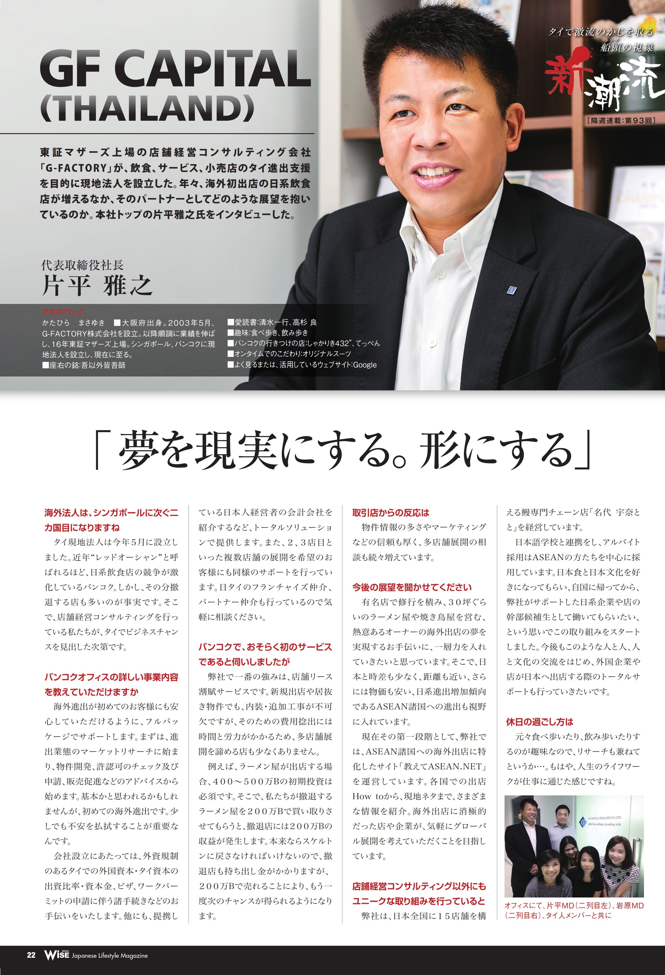 弊社子会社GF CAPITAL (THAILAND)CO.,LTD. と代表取締役片平雅之のインタビュー記事がWEEKLY WISEに掲載されました。